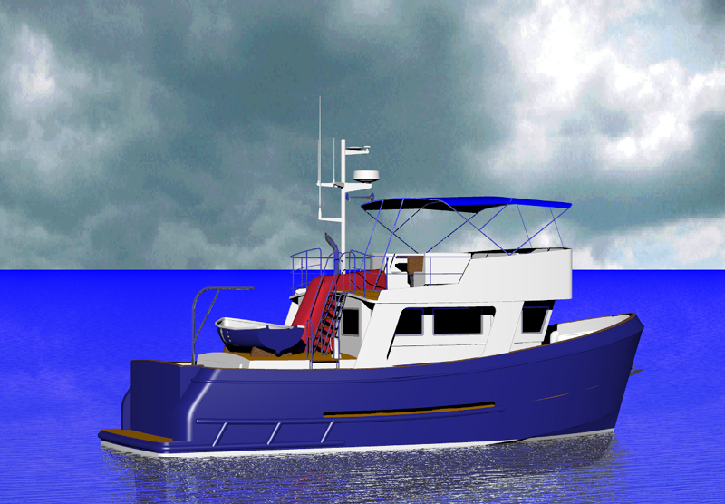 Mayrik P41 is in the line of the American traditional trawlers. Heavy, slow, equipped with an exceptional range, very comfortable and roomy, it is a boat to live and travel everywhere in the world without concern. Robust and defended well, it can peacefully face any sea Its equipment makes it completely autonomous for months. Conceived to last, you will bequeath it one day to your grand-children. |
