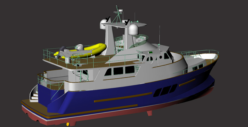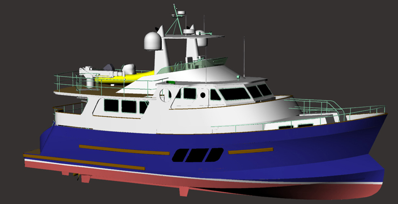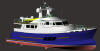 After his fantastic crossing of the Atlantic with his small trawler of 6,50m, the naval architect Yves Kinard from Mayrik Yacht Design signs a new drawing, that of a “Trawler Express” of 17,60m (57,7 feet). Trawler because it is conceived with comfortable installations, an interior completion and a drawing in the tradition of the American boats, but “express” because it is possible to choose a very motorized solution propelling this beautiful unit with more than thirty knots thanks to its very powerful hull with “through the waves” bulbous bow, propellers in tunnels and its two engines of 1.000 hp. However two other motorizations are considered. One not very powerful, corresponds to philosophy trawler, the other, still being studied would propose an electric complement with the most powerful version, thus authorizing great crossings. Built out of aluminum with a luxurious interior, it is addressed to customers in love with the beautiful boats to the traditional aspect which will find in this unit a truth large yacht, without its size, combining performances and autonomy. Suggested with a traditional plan of installations, it can, in dialog with the customer, being adapted and personalized. |