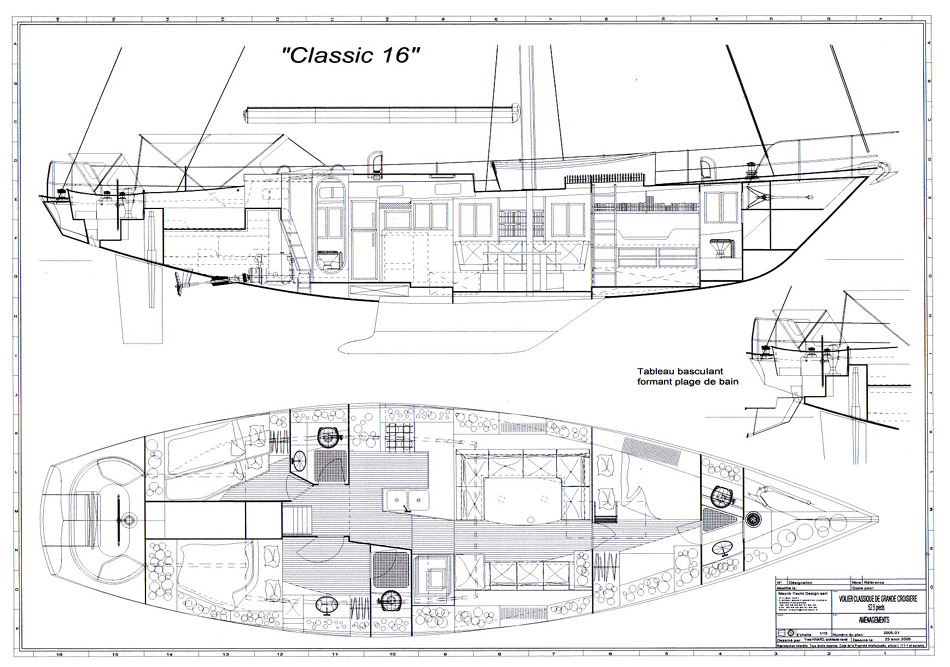 Initially drawn by an Australian architect for himself, this splendid cutter has a new owner and sails the Caribbean regularly. Mayrik Classic 16 is freely inspired by this boat of which it begins again rather accurately, at the request of its current owner, the general lines, while being modernized. The layout, re-examined, as well as the deck arrangement, make the beautiful share with comfort. A very beautiful unit with the traditional lines above water, but equipped with a very powerful hull below the water line. For the in love ones with the tradition, it is built out of wood moulded on jointed stringers, undoubtedly the best material which is to last. |