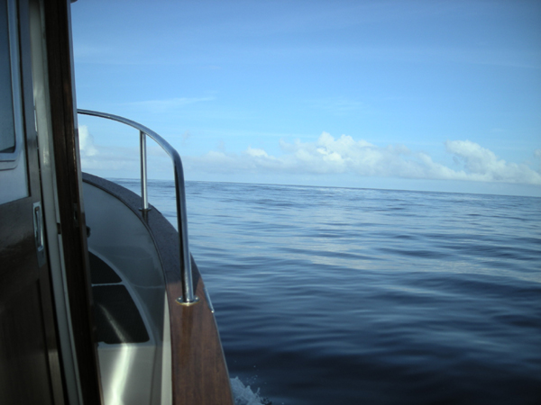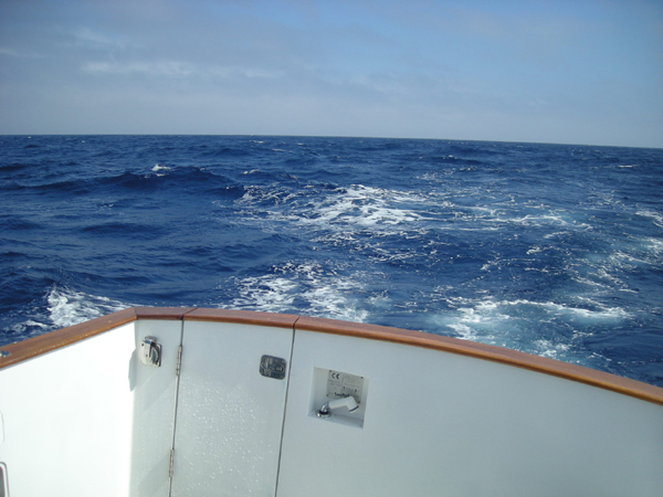 houle de côté et donc le bateau roule bien évidemment. La mer est déserte,