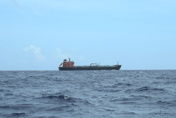 quand même vu trois bateaux, un container-ship et deux cargos, dont l'un peu