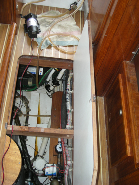 Seul, inconvénient, un peu moins de ce bon vent bien placé que j'espérais. La journée d'hier a été pareille aux précédentes, calme. Dans la fin de l'après-midi un gros cargo est venu nous distraire un peu, nous rattrapant mais en ayant une route un peu divergente par rapport à nous. Manifestement il vise de passer entre les deux groupes d'îles. Le bateau passe bien dans cette mer, mais nous louvoyons quelque peu dans la mesure où la mer de l'arrière nous emporte sur un bord ou l'autre régulièrement. Le moteur tourne comme une horloge. Je suis seulement un peu étonné que depuis quelques jours, sa consommation augmente légèrement un peu. Nous étions toujours dans les 75 à 78 litres par jour, et maintenant nous franchissons régulièrement les 80. Et sans tenir compte de la correction du Floscan. Là aussi, une mauvaise surprise. Jusqu'à maintenant il me semblait que les chiffres fournis par l'instrument corrélés avec l'épuisement des réservoirs, étaient relativement cohérent, mais c'était difficile à dire. Lors de la première étape, comme d'ailleurs durant les essais, nous avons vidé un peu tous les tanks en même temps de manière à garder l'assiette du bateau. Cette fois, nous avons vidé les réservoirs les uns après les autres, et comme leur capacité est connue, la comparaison est plus simple. Reste qu'elle est toujours approximative et le plus souvent liée à la lecture de la jauge, elle-même sujette à caution, l'indication n'étant pas linéaire du fait de la forme des réservoirs. On ne peut vraiment sûr qu'un tank est vide que quand la pompe ne tire plus. De même, on ne peut être sûr que le day tank est plein que lorsqu'il déborde. Or, il est rare d'avoir les deux conditions remplies en même temps. On a donc toujours des approximations. J'avais été un peu alerté par cet écart apparent entre la consommation indiquée par le Floscan et la consommation réelle lors du remplissage aux Bermudes. Je pensais prendre 650 litres, et nous en avions pris pour finir 816. Mais l'écart avait alors été mis en partie sur la marge d'erreur annoncée par le fabricant (+/- 5%) et d'autre part sur le fait que, sans doute à cause d'une bulle dans un tuyau, nous n'avions pas un plein parfait au départ de Saint Martin. Pour preuve le fait que le bateau gîtait d'un bord légèrement. Mais hier, vers 15h, lors de l'épuisement du dernier tank dans le journalier, le doute n'était plus permis. Après calcul, forcément basé aussi sur une appréciation du remplissage quasi maxi du journalier, la marge d'erreur est finalement de 11,56%, ce qui est énorme. Je ne m'explique pas cela, est-ce dû à l'instrument et la qualité du gasoil (excellente aux Bermudes, d'une pureté incroyable) ou un mauvais calibrage? Il y a aussi que l'instrument est fait sans doute pour le débit maximum (18 l/h) et que dans les faibles débits, son imprécision est plus grande. Je ne sais, mais cela a forcé à revoir tous les calculs. Et donc maintenant à corriger les infos du Floscan. Et corrélé à l'indication de la jauge, cela semble bon. espérons. Parce que encore une fois, j'aime pas ramer.....surtout sans rames. Et Patrick a refusé catégoriquement de mettre les palmes et pousser le bateau. Même menacé de suppression de Figolu (biscuits aux figues, alimentation de base de Patrick). Encore deux jours, deux nuits, et ça y est. ........... Cela allait trop bien. Tout tournait à merveille, il a fallu que le capitaine, qui stresse pour son gasoil se mêle de vouloir récupérer quelques litres par-ci par-là. Le seul problème, inévitable, c'est qu'à mélanger de l'eau de mer et du gasoil dans les mêmes tanks, à un moment donné il y a un problème. Et c'est ce qui est arrivé. En fait, je voulais récupérer le gasoil qui se trouve dans les tuyaux de remplissage des réservoirs. Parfois, dans leur cheminement, je n'ai pu empêcher qu'ils fassent un petit ventre où stagne un peu de gasoil. Mais vu leur diamètre (1,5 pouce), cela fait vite quelques litres. Et comme on est juste, j'ai eu la lumineuse idée de le récupérer en introduisant par le nable de pont un tuyau plus fin accouplé à notre petite pompe à tout faire. Sauf que, au début où j'ai ballasté, j'avais utilisé ces mêmes nables pour remplir d'eau de mer avant finalement de choisir de le faire par la purge basse, ce qui allait bien mieux et qui était prévu dès la construction (les raccords existaient). Or, le gasoil que nous avons chargé aux Bermudes était d'une transparence exceptionnelle. Du coup, dans mon tuyau, je n'ai pas vu de suite la différence entre de l'eau de mer et du gasoil. Quand le soupçon m'est venu, le temps de le confirmer, puis de me rappeler que la succion du gasoil était très proche du fond (une erreur d'ailleurs à rectifier), c'était trop tard, le moteur commençait à ratatouiller pour finalement s'arrêter dans un dernier hoquet. Bon, ben nous voilà en panne au milieu de nulle part, à 185 miles des Açores. Personne ne panique, même pas Patrick pour qui ce genre de situation est inconnue. Pour ma part, j'ai le souvenir douloureux d'une tempête en mer d'Irlande, en plein hiver, avec mon épouse, ou plusieurs fois le moteur nous a laissé tomber ayant dû, bon gré mal gré consommer un gasoil que l'hiver avait rendu très humide à la dernière station service. Même remède ici, d'abord tout drainer, le réservoir qui contenait au moins 5 à 6 litres d'eau, le filtre primaire, plein jusqu'à la gueule, et enfin le filtre moteur. Sans compter le circuit d'injection, pompe et injecteurs. Bref, il a fallu une heure et demie pour nettoyer tout cela et après quelques essais infructueux, parfois un peu précipités avant d'avoir fait tout dans les règles, dans le vain espoir de voir miraculeusement la bête se réveiller, le Perkins a enfin fait entendre son ronron rassurant. Depuis, il re-tourne sans faille à la grande satisfaction de l'équipage. Le capita