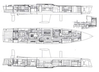 Mayrik 93 is a sailing ship of exception. Its extraordinary program enables him to answer any request of its owner. Conceived to be maneuvered in full safety by a couple, it can as well sail in the Antarctic thanks to its robust aluminum hull, as to go up the Amazon, to penetrate deeply in Europe by going up the canals, in particular the mythical “canal du midi”, to beach itself gently on a deserted sand beach or to parade in Cannes. Equiped with a canting and lifting keel, as well as two fin-keels, it is a very powerful sailing ship. Its large garage makes it possible to accommodate a small car, quads, or of the jet-skis. Its extreme versatility, its rig or its powerful motorization will put the world at your range. All that in greatest safety since it is completely insubmersible. |