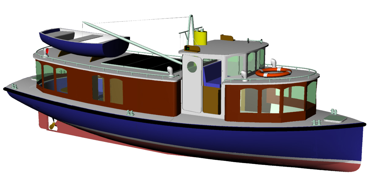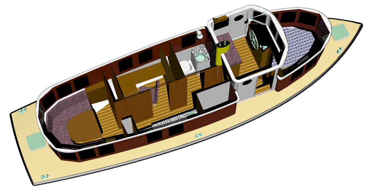 Style un peu rétro pour ce bateau plutôt destiné à la navigation fluviale, mais néanmoins capable d'aller en haute mer sous couverture d'une bonne prévision météo. 11m de long. | ||||||||