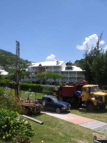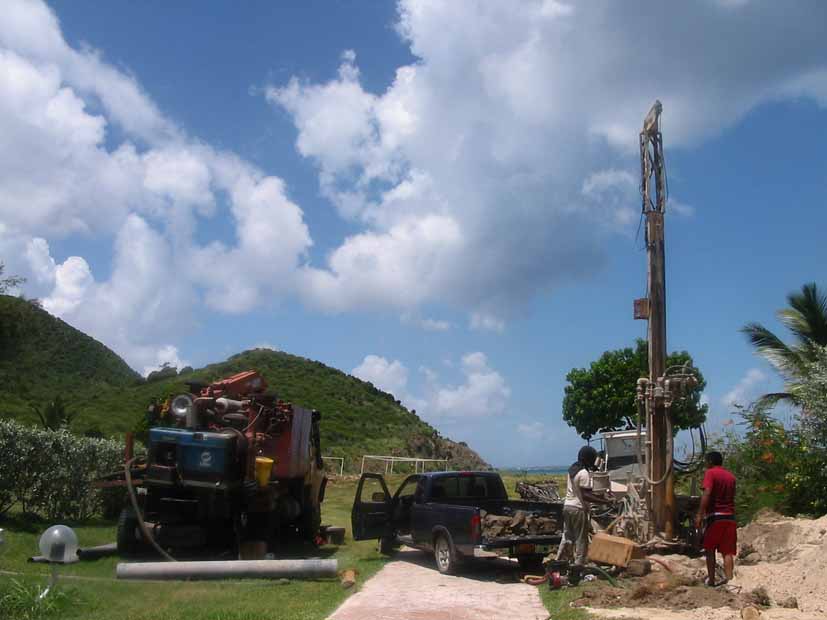Une des solutions pour s’approvisionner en eau est de forer et aller chercher la nappe phréatique. Quasiment partout à Saint Martin, plus ou moins profondément, on peut trouver de l’eau. Nous avons rencontré le seul opérateur sur l’île, Maxence de Blégiers de la société Exofor. |