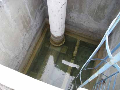 Le pompage de l’eau de mer se fait par trois puits séparés qui vont chercher l’eau à une cinquantaine de mètres du rivage dans la baie de Galisbay (baie de la Potence). Des canalisations sous-marine de quatre vingt centimètres de diamètre sont posées sur le fond (deux par puit) et se terminent par un coude d’environ deux mètres, vers le haut. A terre, un puit reçoit l’eau qui circule par simple vase communicant. |