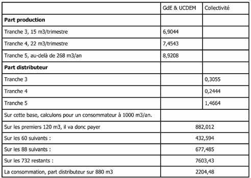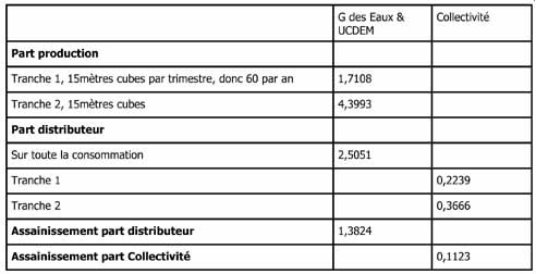 Prix de l’eau…...suite. |