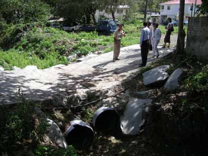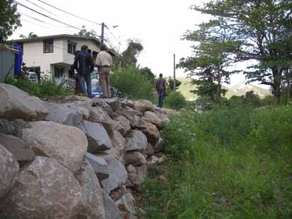 Lundi matin, le vice-président Pierre Aliotti avait convié la presse à une bien sympathique réunion sur deux sites de l’agréable vallée de Colombier. Il s’agissait de présenter des travaux effectués sur la ravine et qui ont été imposés par les dégâts dus au ruissellement lors du cyclone Omar. La berge en effet avait été largement entamée par la crue, qui avait enlevé la terre presque jusqu’à la route qui, de ce fait, était dangereuse et menaçait à tous moments de s’effondrer. La Collectivité a donc récemment renforcé la berge par un solide empierrement. Les travaux ont coûté 42.000€ pour une longueur renforcée de 70 mètres. Le Président Frantz Gumbs vint lui aussi constater les travaux avant que nous allions visiter un peu plus haut un autre site. Là, il s’agissait à moindre frais de permettre à des résidents sur l’autre berge de conserver un accès en cas de crue. Deux grosses buses ont donc été posées, noyées dans le béton de manière à ménager un gué. En cas de montée de l’eau, elle s’écoulera par les buses, conservant l’accès. En cas de très fortes inondations, l’eau passera par-dessus. Mais cela dure généralement que peu de temps, tandis que l’eau peut, par contre, continuer à s’écouler durant des jours, mais avec un débit insuffisant pour submerger le gué. Cette petite escale champêtre était aussi un moment d’apprécier cette charmante vallée et s’inquiéter auprès des élus de sa protection. Seul véritable espace à encore conserver son charme et l’ambiance d’autrefois, il est relativement protégé puisque les constructions hôtelières y sont interdites, comme aussi la promotion immobilière. Espérons que cela durera. |
