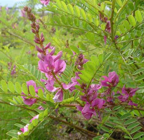 Fleur d’indigotier. C’est sa feuille qui était utilisée pour extraire le colorant. |