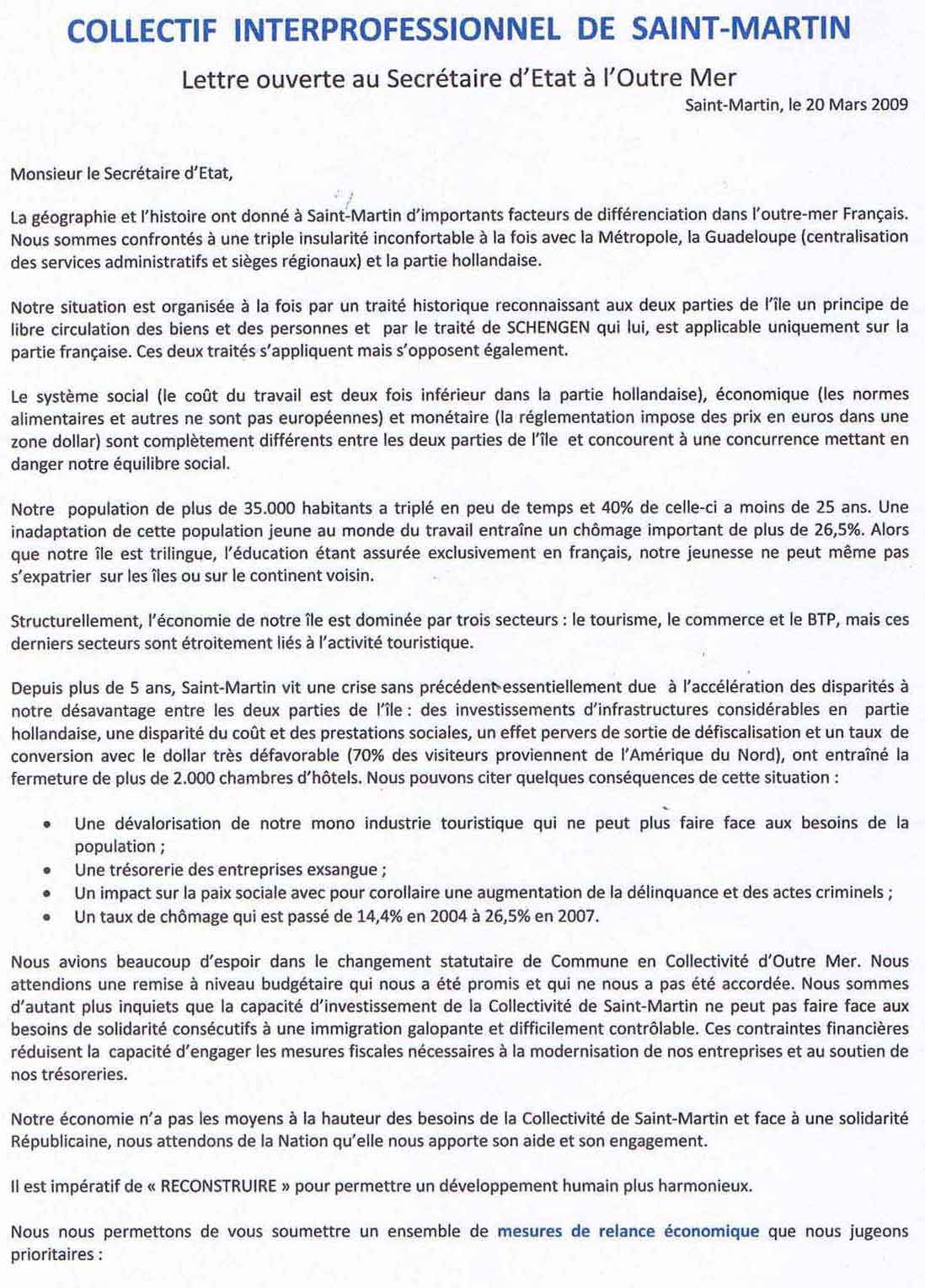 | Lettre ouverte: le Collectif Interprofessionnel de Saint Martin | ||||||||