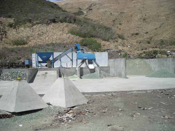 A l'avant plan, une ancienne trémie reconvertie en moule pour faire les corps morts de la Réserve. Derrière, le compacteur pour le métal. |