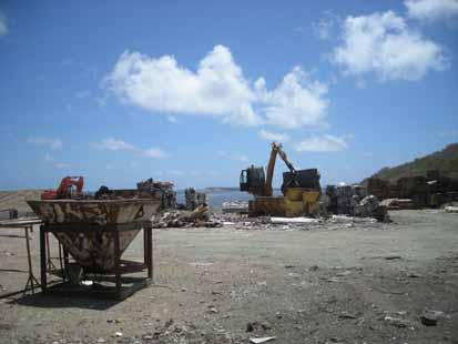 Un équilibre difficile à atteindre. Les déchets ménagers sont entreposés sur la partie de la décharge de la Collectivité, tandis que la partie recyclage est traitée sur la partie louée par Verde. La totalité du site est gérée par cette société qui agit dans le cadre d’un contrat de prestation de service pour la Collectivité. Petit à petit, l’entreprise s’organise, protège le site, veille à empêcher les écoulements polluants (aujourd’hui, plus aucun jus ne s’écoule des immondices), creuse des canaux de dérivation pour éviter qu’en cas de forte pluie ruisselant de la montagne cela ne vienne drainer la décharge. Parallèlement, de nouvelles machines vont venir remplacer le matériel vieillissant, un atelier sera organisé. Dans l’avenir, certains déchets seront même valorisés sous forme d’énergie qui pourra être réutilisée pour procurer par exemple de l’électricité. Aujourd’hui, l’éco-site de Grande Caye emploie 7 ouvriers à temps plein, une secrétaire, Jean Pierre Tey, mais aussi un sous-traitant et son employé, et deux personnes 15 jours par mois pour la maintenance. |
