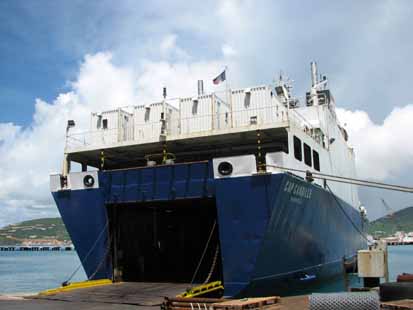 Quelques fausses idées. La conversation avec Liliane Hohl a aussi permis de dissiper une fausse idée trop souvent entendue lors des grèves de Guadeloupe, celle du supposé monopole de CMA CGM. Il n’en est rien. Deux autres compagnies, dont Marfret (qui utilise en fait les bateaux CMA CGM), assurent aussi des liaisons trans-Atlantique et le jeu de la concurrence s’établit normalement. Comme nous le disions plus haut, la compagnie CMA CGM s’est positionnée sur les Antilles à la grande époque des bananes. Avec la concurrence de la banane dollar et la réduction de capacité de la Guadeloupe et Martinique qui s’en est suivie, la compagnie a dû rechercher d’autres escales pour assurer commercialement sa desserte des Dom. C’est ainsi qu’est née la route qui va d’Angleterre au Brésil (retour par Algésiras) et qui s’arrête chez nous. Quatre escales par semaine sont assurées par les navires de CMA CGM, dont certains sur une ligne en provenance des USA, une autre avec un Roro (le Cap Canaille qui vient parfois à Galisbay quand ce n’est pas possible à Philipsburg, fait deux escales semaine) plus régionale. Le problème de Saint Martin est évidemment le déséquilibre entre import et export, puisque 95% des containers qui transitent chez nous concernent l’import. Les 5% d’exports sont pour la plupart des déménagements, la mobilité des fonctionnaires y étant pour beaucoup. Un seul de ces bateaux transite encore par la Guadeloupe, celui qui vient de Méditerranée, mais la survenance d’événements en Guadeloupe peut rapidement le détourner vers un autre port. Le temps où nous étions otages de la Guadeloupe est donc bien révolu. |