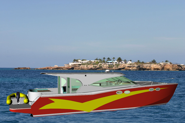 | Ce bateau peut être fourni avec ou sans cockpit avant, avec ou sans cabinet de toilette, avec ou sans une cabine skipper. On peut aussi choisir entre des sièges individuels plus indiqués pour une utilisation navette, ou entre des banquettes plus adéquates pour des sorties à la journée. Ce bateau dispose d'une porte latérale à ouverture totale qui permet l'embarquement d'une personne en fauteuil roulant. De l'autre bord, une porte basculante et une échelle donnent accès à l'eau et permettent la remontée. Construit en aluminium comme le 430 (ou en contreplaqué époxy sur demande) le 417 est un bateau très robuste et marin, apte à passer rapidement et confortablement dans les mers difficiles comme on les rencontre dans les canaux entre les îles aux Antilles. Le bateau est prévu pour 15 à 16 personnes + une chaise roulante + le skipper. Il est très polyvalent et peut être adapté à la plongée sous-marine. A noter que le 417 peut être fourni avec la plage arrière du 430, mais en choisissant les moteurs diesel sur embases. | ||||||||