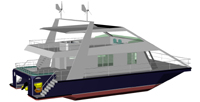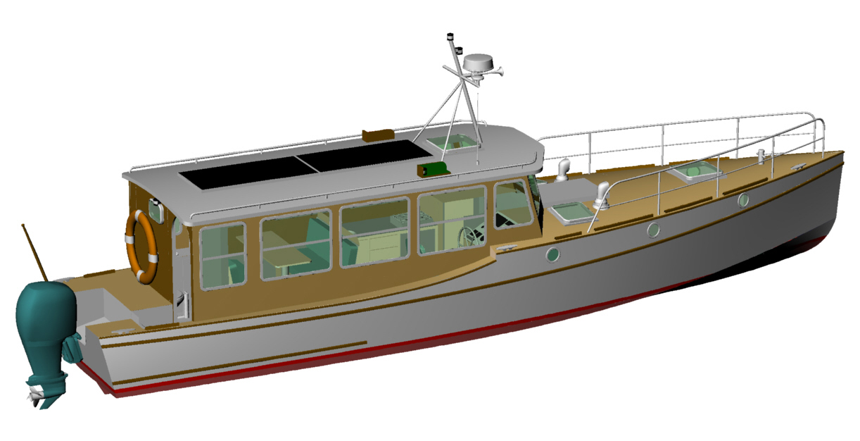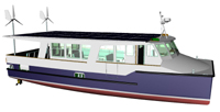 This electro-solar shuttle able to transport 40 passengers is being studied for a startup with Saint Martin at the end of 2012. The idea is to have a shuttle service whose ecological impact is neutral. Construction in strip planking and plywood epoxy. Solar panels on board and ashore will provide all energy necessary. Thanks to the use of batteries lithium-ion, the engine output will be important and thus the duration of rather short rotations. A touristic activity is also planed. |