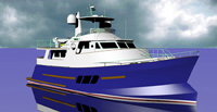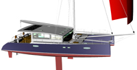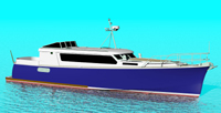 Local project of a general-purpose fishing vessel, this catamaran is very broad with 6,40m and offers a important interior volume. There is enough place to house comfortably four sailors. Embarking semi-rigid on a ramp and having a large work deck, it can also accommodate scientific expeditions or accomplish transport. Aluminum construction. Adequate for a use everywhere in the world. |