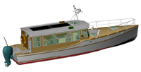 Currently studied, this very pretty motorboat with the traditional style which will be built however in a version plus Spartan on the level of installations. Thick aluminum construction, gasoline outboard engine. A version with except electric outboard (2 to 3 X 10/13KW) is also being studied. A diesel generator will then provide the power necessary in complement of the solar panels and the buffer batteries. |
