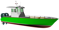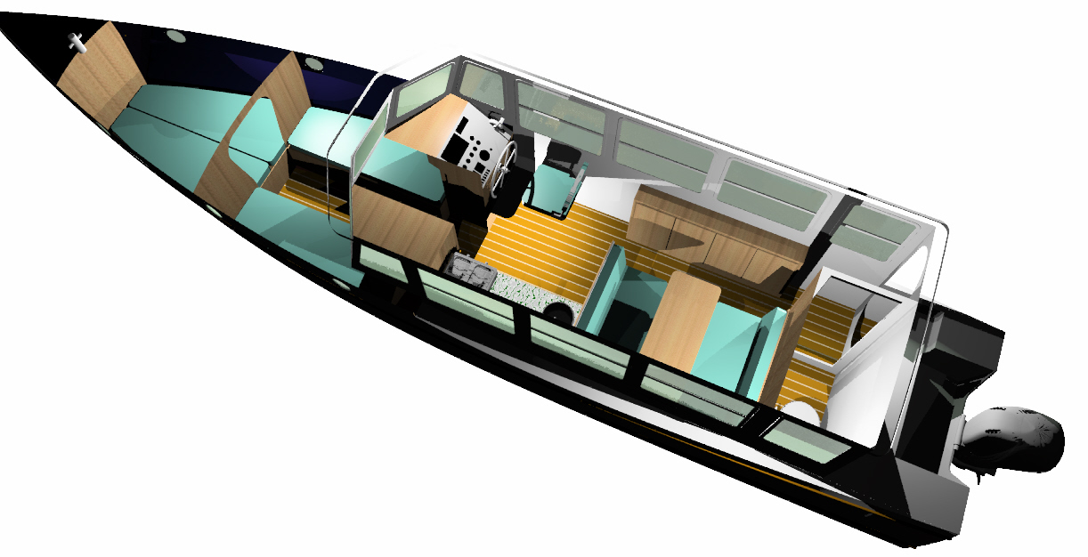 Studied for the Antillean fishermen, this traditional hull is built out of thick aluminum. Solid, seaworthy, motorized by two powerful engines 4 strokes, the prototype should be built during 2011. |